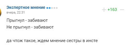 "Прыгнул - забивают, не прыгнул - забивают. Да что же такое, ждем мнение сестры в инсте".
