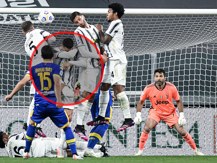 Роналду также решил не выпрыгивать вместе с партнерами, а мяч перелетел через него и оказался в воротах. Несмотря на поступок португальца, "Ювентус" одержал победу со счетом 3:1.