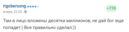 "Там в лицо вложены десятки миллионов, не дай бог еще попадет:) Все правильно сделал:))"