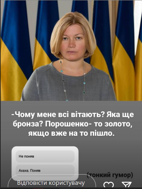 В сети распространяются мемы, в которых с бронзовой медалью приветствуют однофамилицу спортсменки депутата Ирину Геращенко.