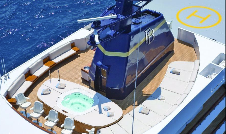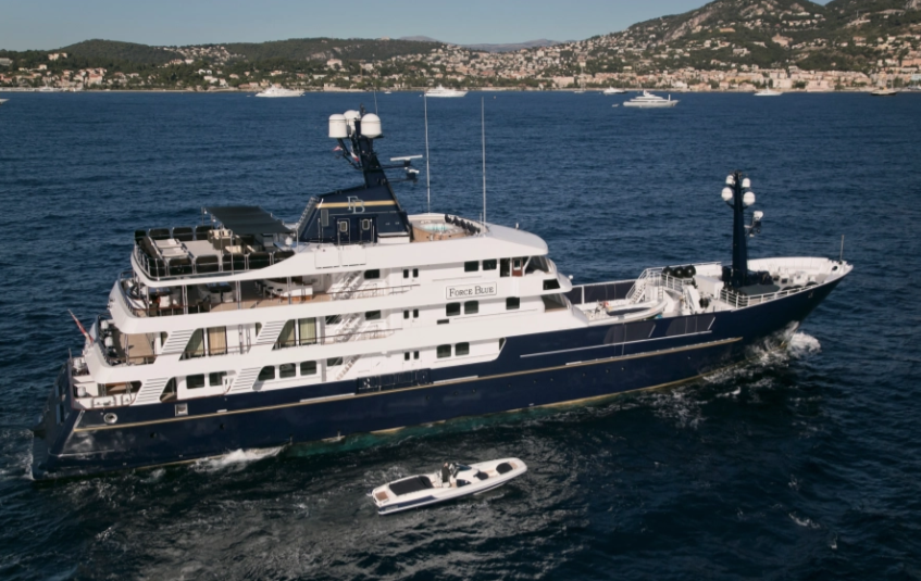 Яхта "Форс Блю" может вместить 12 гостей и располагает роскошными удобствами, включая спа, тренажерный зал и джакузи для отдыха, а также кинотеатр и дискотеку.