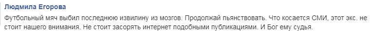 "Футбольный мяч выбил последнюю извилину из мозгов. Продолжай пьянствовать. Что касается СМИ, этот экс не стоит нашего внимания. Не стоит засорять интернет подобными публикациями. И Бог ему судья".