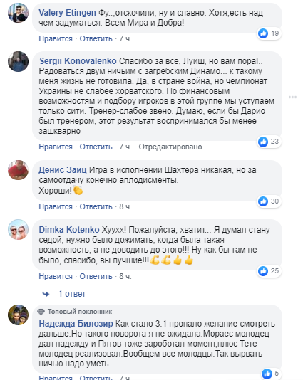 Так, поклонники украинского футбола отмечают стремление футболистов "Шахтера" играть до финального свистка.