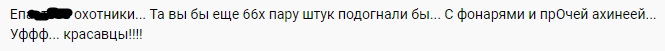 "Вам не стыдно такую "охоту" показывать? Использование подсвечивающих устройств запрещено законом, это задокументированное браконьерство".