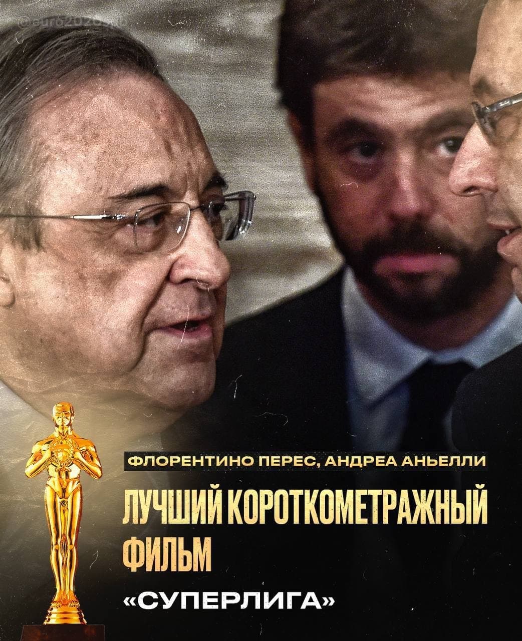 Фанаты создали коллаж с президентом Суперлиги Флорентино Пересом и сопредседателем турнира Андре Аньелли и признали их лучшими в номинации "Лучший короткометражный фильм".