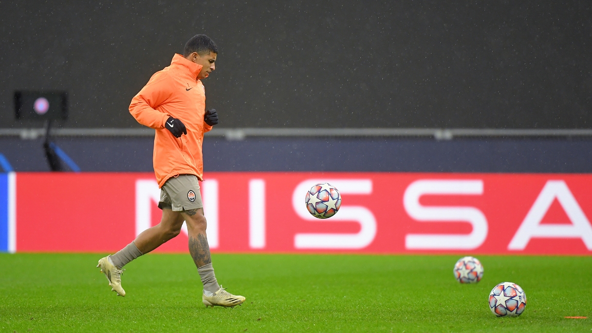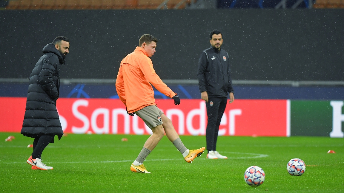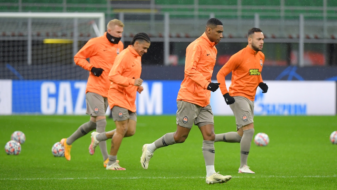 Футболисты "Шахтера" вышли на разминку.