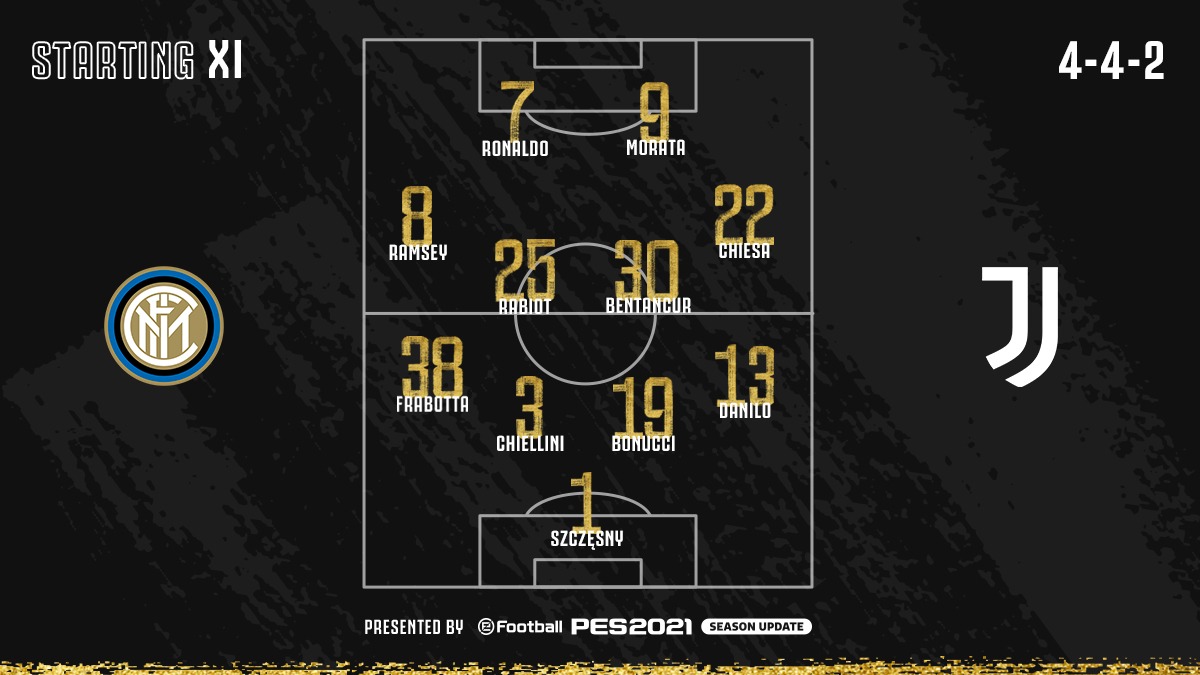 "Ювентус": Щесны, Кьеллини, Фработта (Бернардески, 58), Данило, Бонуччи, Рэмзи (Кулусевски, 58), Бентанкур, Рабьо (Маккенни, 58), Кьеза, Мората, Роналду.