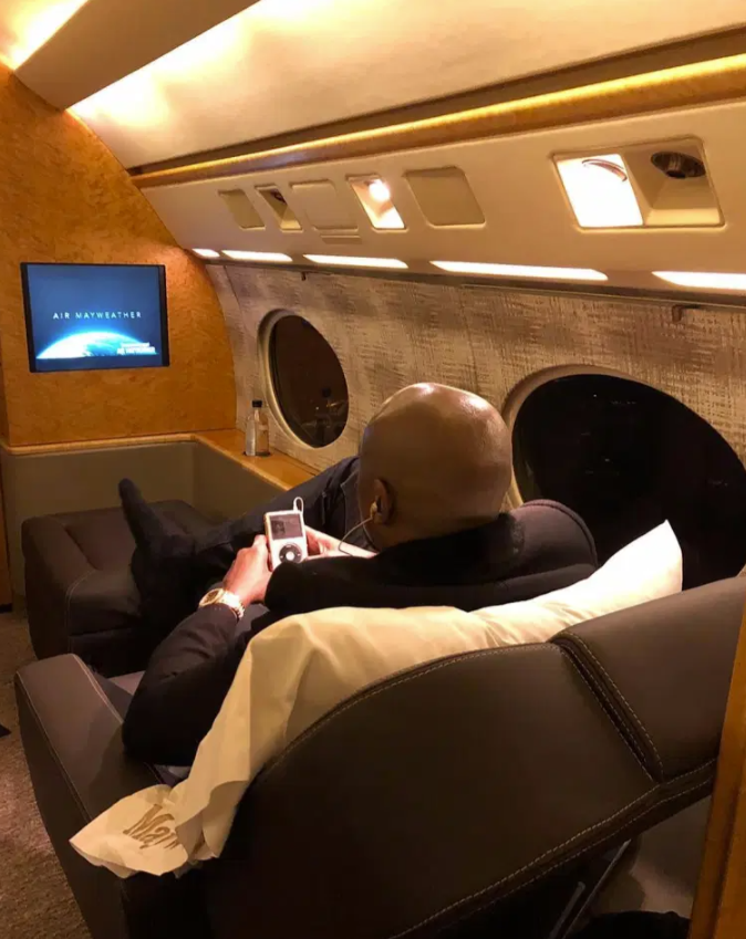 Считается, что Мейвезеру принадлежат три частных самолета, один из которых он называет "Эйр Мейвезер". Самолет Gulfstream G650 стоимостью 66 миллионов долларов вмещает около 14 человек. Американец купил его в 2018 году в подарок себе на день рождения. Боксер часто делится фотографиями, как он играет в покер с друзьями, делая большие ставки, находясь на борту самолета. "Эйр Мейвезер" украшен логотипом TMT "The Money Team" и его рекордом в профессиональном боксе 50:0.