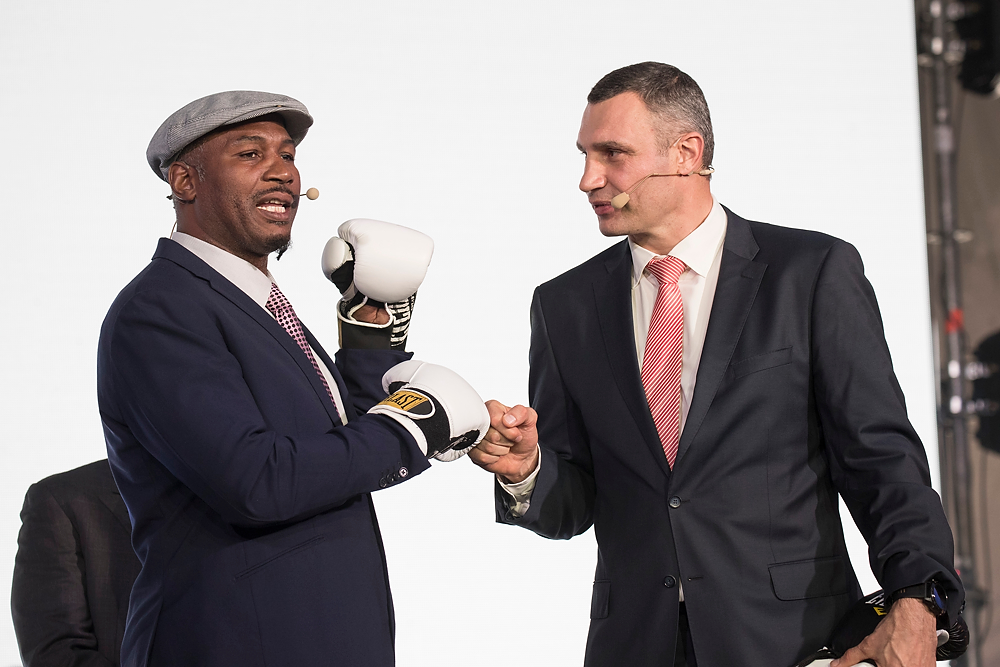 Вечный чемпион WBC, мэр Киева Виталий Кличко и легенда мирового бокса Леннокс Льюис встретились в боксерских перчатках.