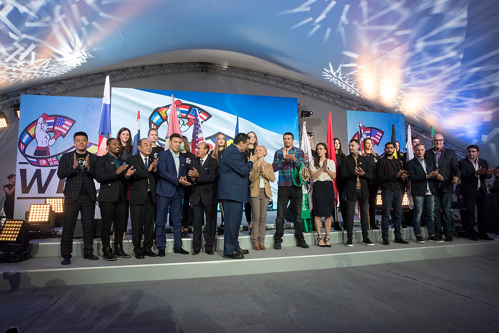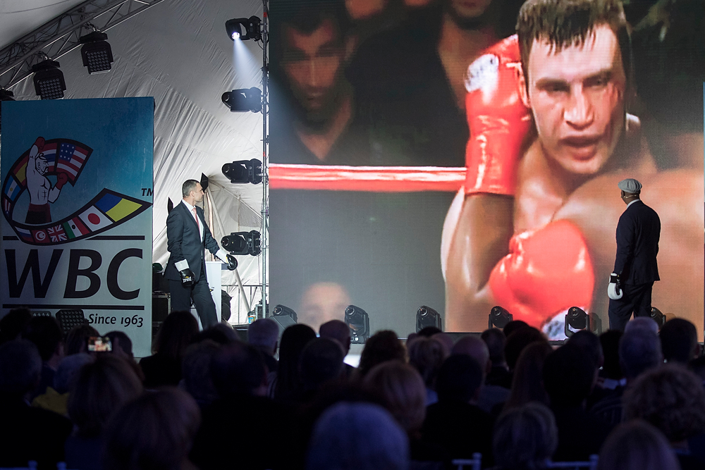 Такой выход звезд бокса состоялся во время церемонии открытия 56-го конгресса Всемирного боксерского совета (WBC), который впервые проводят в Киеве.