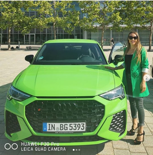 В кадре Вирер показала свой новый Audi зеленого цвета. Он был доставлен биатлонистке с завода компании в немецком Ингольштадте.