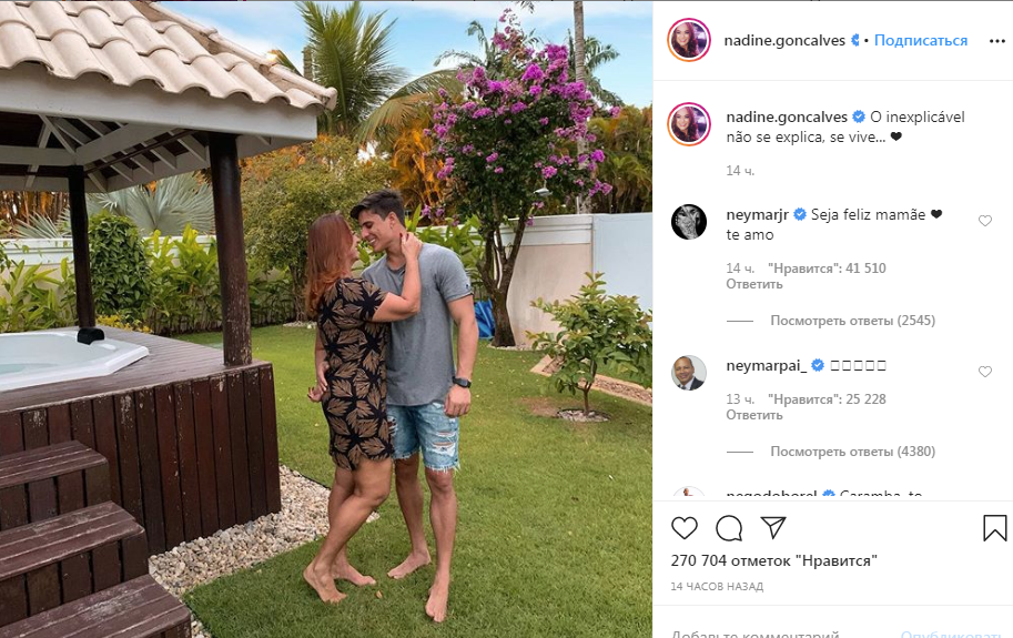Неймар одобрил отношения матери, написав в комментариях: "Будь счастлива, мама. Люблю тебя".