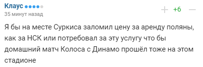 "Я бы на месте Суркиса заломил цену за аренду поляны, как за НСК или потребовал за эту услугу что бы домашний матч "Колоса" с "Динамо" прошел тоже на этом стадионе".