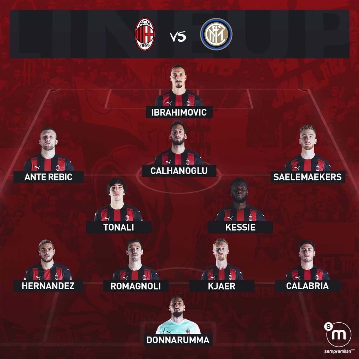 "Милан": Доннарумма, Калабрия, Кьер, Романьоли, Тео, Салемакерс (Рафаэл Леау, 67), Тонали (Мейте, 67), Чалханоглу, Кессиэ, Ребич, Ибрагимович (Кастильехо, 75).