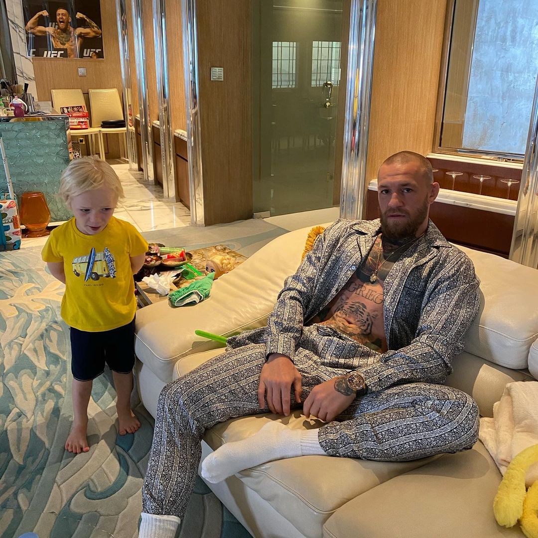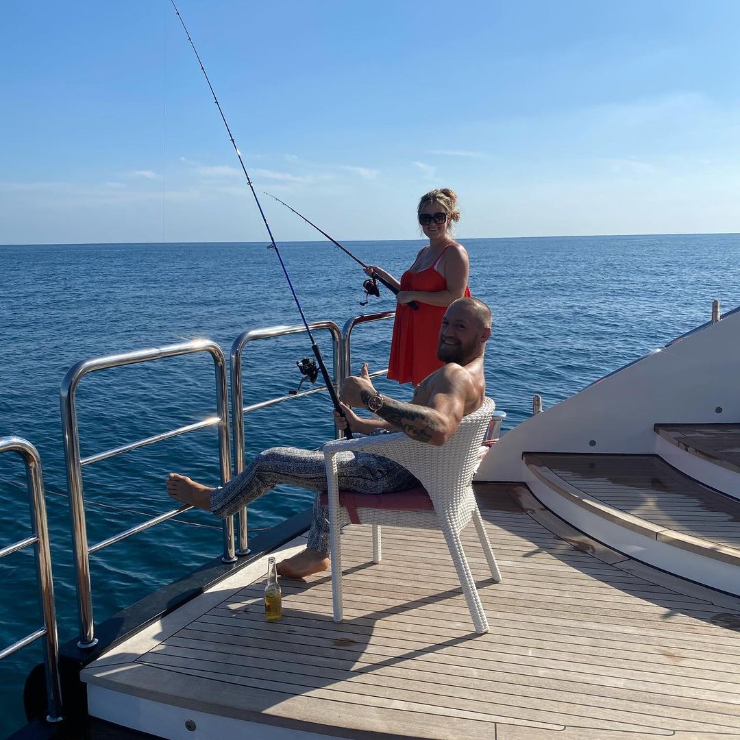 Макгрегор наслаждается свободным временем, катаясь на лошадях и рыбачит со своей возлюбленной Ди Дэвлин и сыном Конором-младшим.