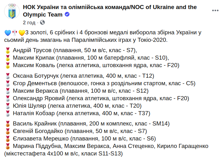 Результаты сборной Украины были опубликованы на странице НОК в Facebook.