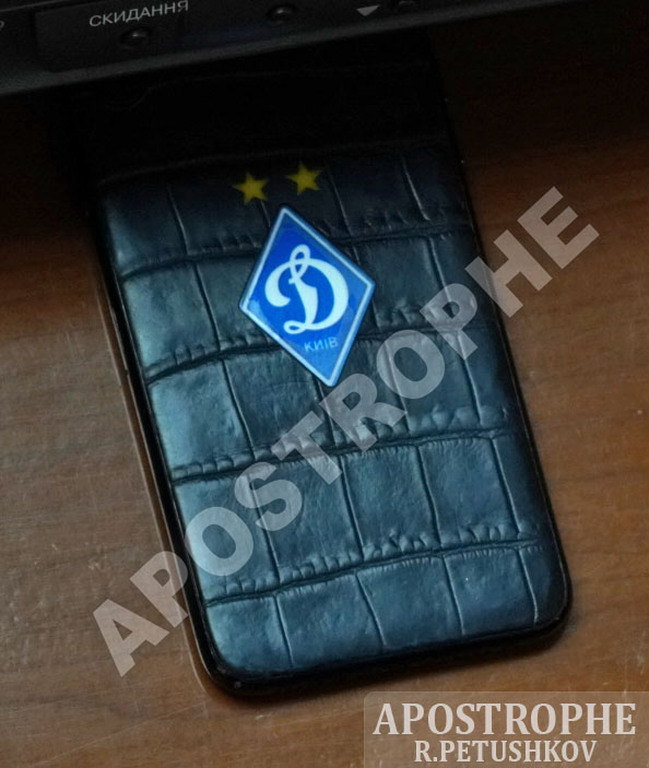 А чтобы ни у кого не возникало вопросов о любимой команде, почетный член УЕФА и почетный президент ФФУ "засветил" мобильный телефон в чехле из кожи крокодила с эмблемой "Динамо".