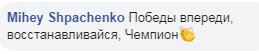 "Ваня, ты боец до мозга костей! Все что нас не убивает, делает сильнее! Обнимаю! Побед!"