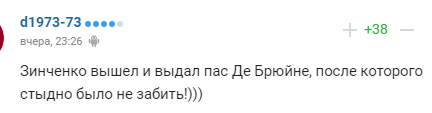 "Зинченко вышел и выдал пас Де Брюйне, после которого стыдно было не забить!)))".