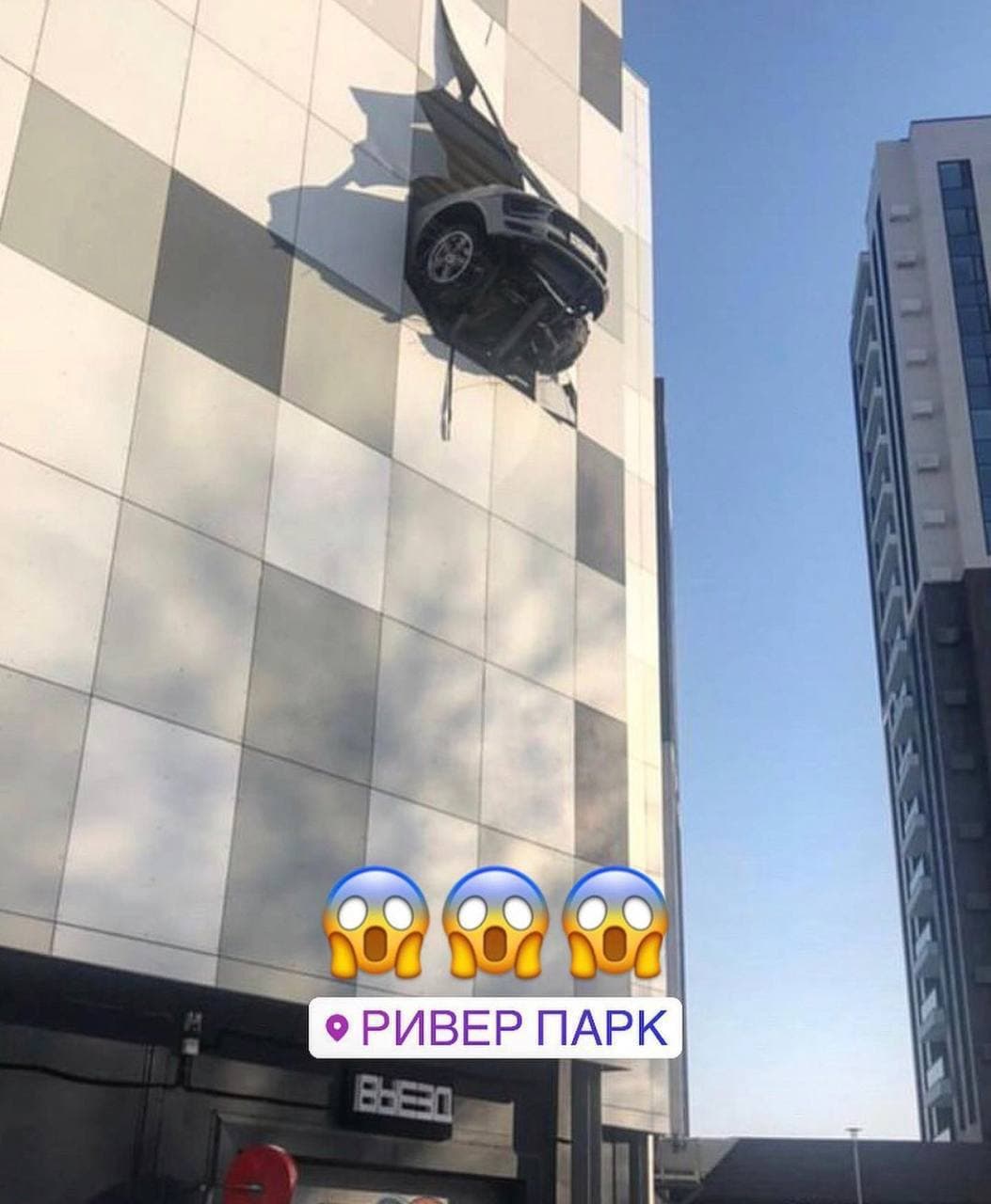 Российский хоккеист Денис Казионов, находясь за рулем своего автомобиля Porshe, пробил крышу паркинга в Москве, в результате чего машина повисла в воздухе на высоте третьего этажа.