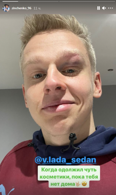 "Когда одолжил чуть косметики, пока тебя нет дома", - написал Зинченко, отметив на фотографии свою жену Владу Седан.