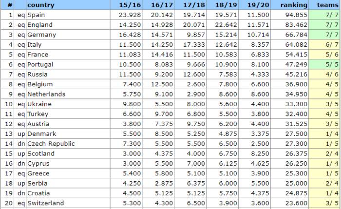 После реформы еврокубков десятая позиция теряет определенные привилегии для серебряного призера первенства страны, так как он стартует в Лиге чемпионов на этап раньше. 11-е же место вовсе не позволяет автоматически делегировать свой клуб в групповой этап Лиги чемпионов.