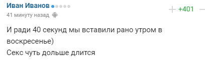 "И ради 40 секунд мы вставили рано утром в воскресенье) Секс чуть дольше длится".