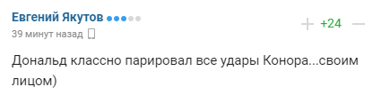 Пользователи сети в основном восторженно отреагировали на первую победу Конора после возвращения, но были и такие, кто посетовал на слишком быстрое окончание поединка.