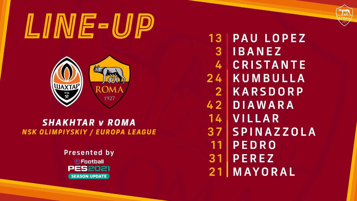 "Рома": Лопес, Спинаццола (Калафьори, 58), Кумбула, Рожер (Манчини, 46), Карсдорп (Бруно Перес, 58), Вильяр, Кристанте, Педро (Эль-Шаарави, 75), Диавара (Пеллегрини, 59), Карлес Перес, Майораль.