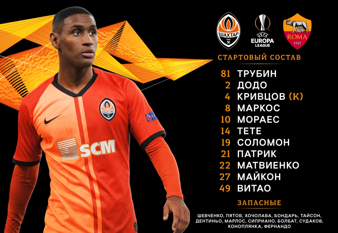 "Шахтер": Трубин, Додо (Болбат, 82), Витао, Матвиенко, Кривцов, Алан Патрик (Коноплянка, 60), Майкон, Тете (Марлос, 60), Маркос Антонио, Соломон (Судаков, 77), Мораес (Дентиньо, 76).