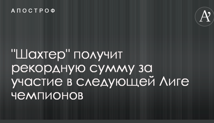 "Шахтер", который на правах чемпиона Украины завоевал прямую путевку в ЛЧ, гарантированно заработает за выход в групповой этап турнира 40 миллионов евро.