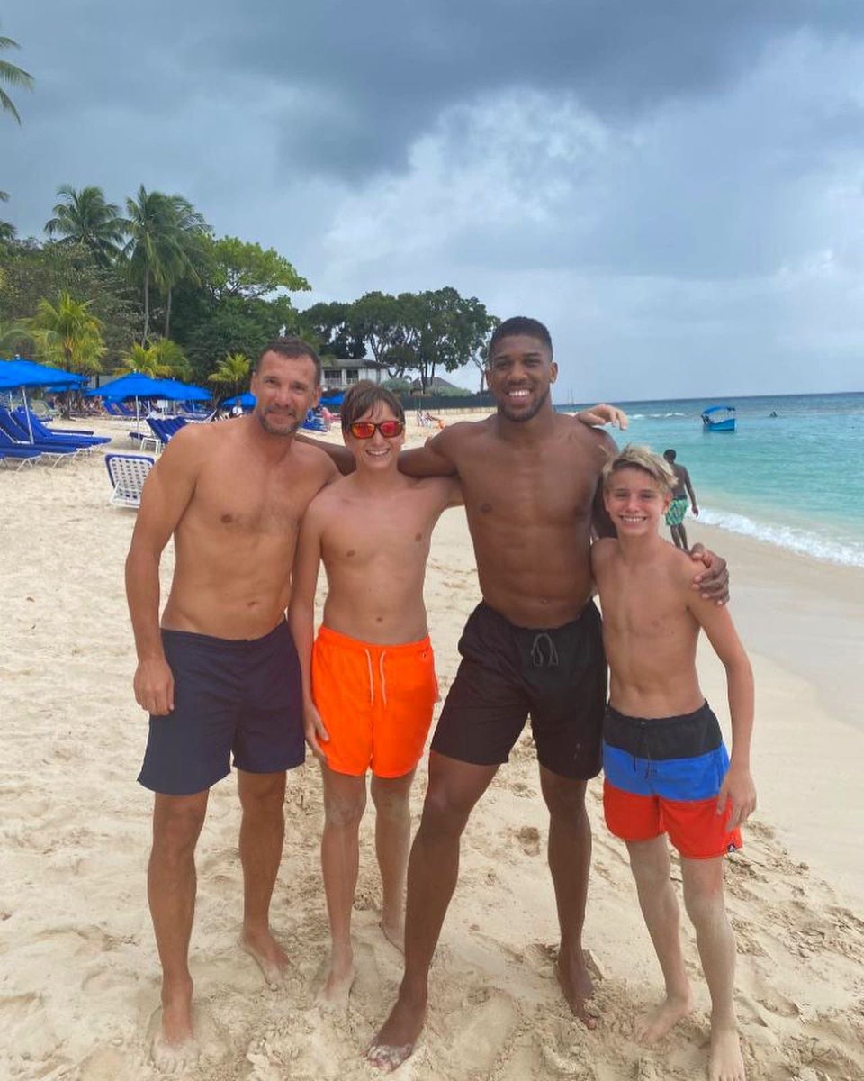 Главный тренер национальной сборной Украины по футболу Андрей Шевченко во время отдыха на Барбадосе случайно повстречался со знаменитым британским боксером, чемпионом мира по версиям WBA, WBO и IBF в супертяжелом весе Энтони Джошуа.