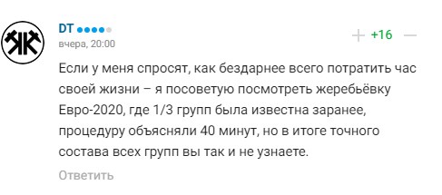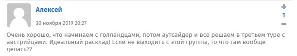 Большинство болельщиков сошлось во мнении, что нашей команде повезло с группой, несмотря, что полный состав ее участников еще не известен. Также многие обратили внимание на сложность процедуры распределения команд по квартетам.