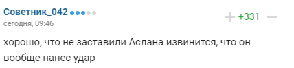 "Хорошо, что не заставили Аслана извинится, что он вообще нанес удар".