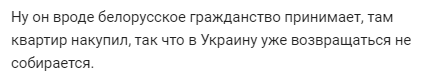 "Ну он вроде белорусское гражданство принимает, там квартир накупил, так что в Украину уже возвращаться не собирается".