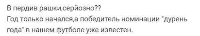 "В пердив рашки, серьезно? Год только начался, а победитель номинации "дурень года" в нашем футболе уже известен".