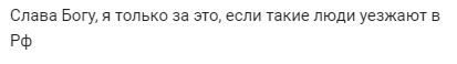 "Слава Богу, я только за это, если такие люди уезжают в РФ".