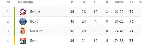 "Лиллю" осталось сыграть с "Сент-Этьеном" и "Анже". ПСЖ встретится с "Реймсом" и "Брестом". "Монако" ждут поединки с "Ренном" и "Лансом". Лионцы сыграют с "Нимом" и "Ниццей".