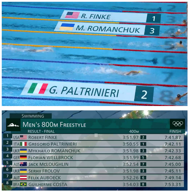 Интересно, что по ходу заплыва в числе претендентов на медаль был еще один украинец - Сергей Фролов, но он выпал из тройки.