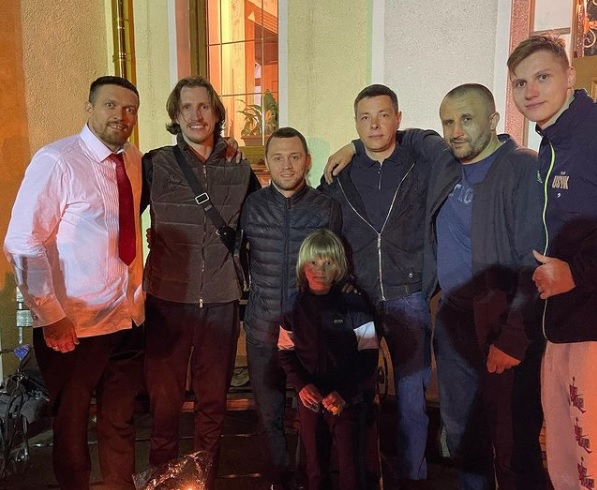 Украинский боксер Александр Усик в ночь с 1 на 2 мая посетил ночную службу в церкви, надев непривычную для себя одежду - белую рубашку, черные брюки и красный галстук.