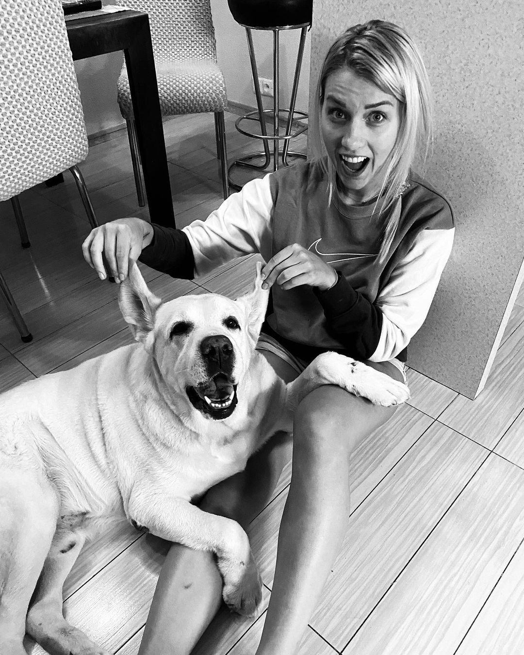 Ольга опубликовала совместное черно-белое фото с собакой, сделанное ранее.