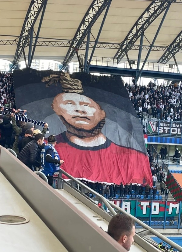 В Польше во время гостевого матча между варшавской "Легией" и познаньского "Леха" футбольные фанаты столичной команды Польши вывесили баннер, на котором изображен повешенным президент РФ Владимир Путин. При этом фанаты скандировали "Русская курва".