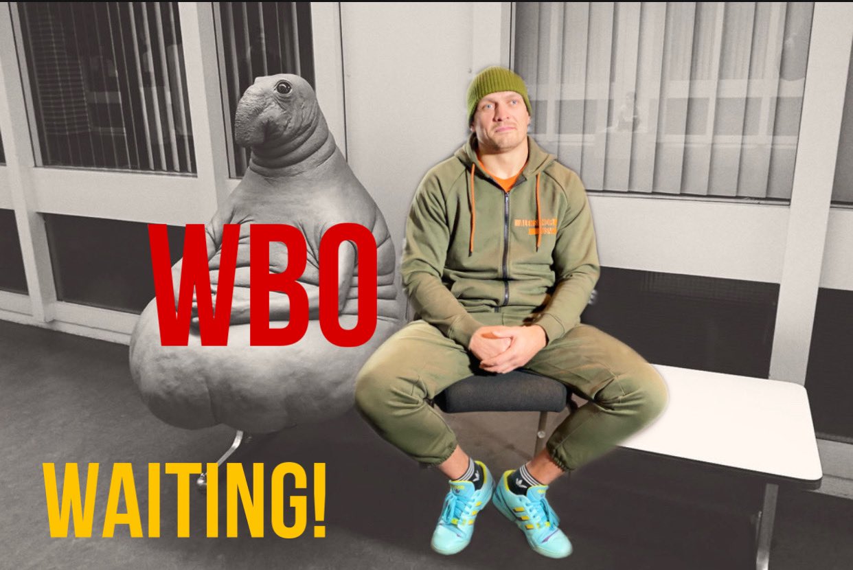"WBO, я жду", - написал Усик, добавив себя на фотографию с известным героем мемов по прозвищу "Ждун".