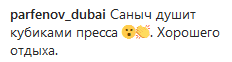 "Саныч душит кубиками пресса. Хорошего отдыха".