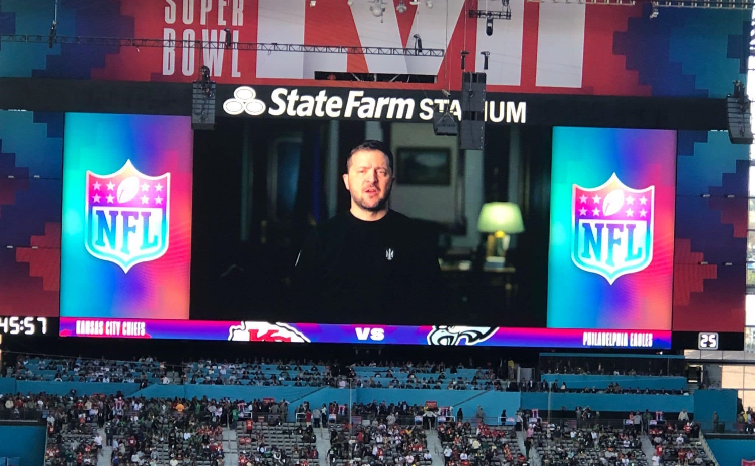 Напомним, что американский астронавт Скотт Келли опубликовал фото, сделанное на игре, на котором видно, как организаторы Super Bowl LVII поддержали Украину.