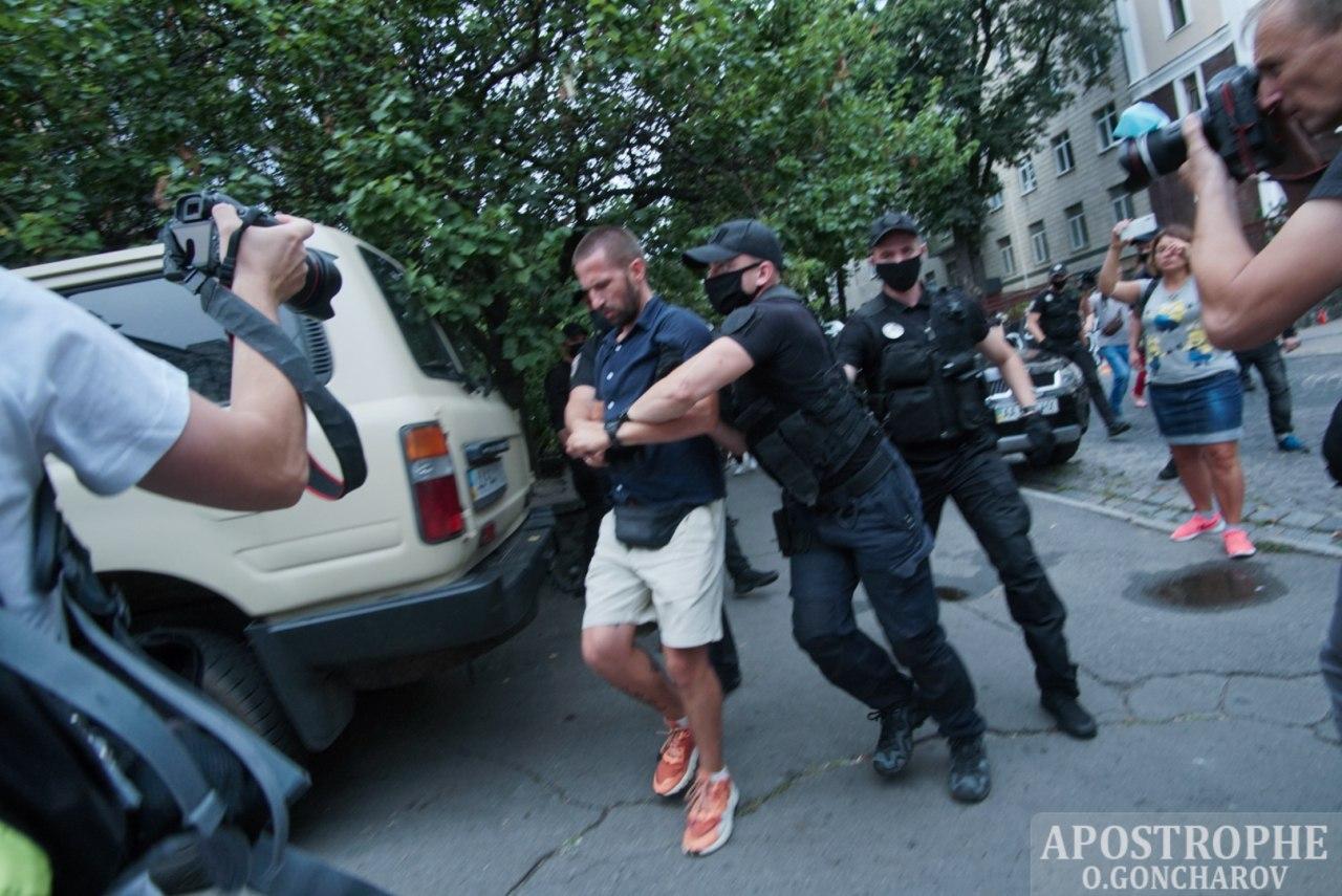 Также во время задержания одного из протестующих били, уже после того как он был в руках полиции.