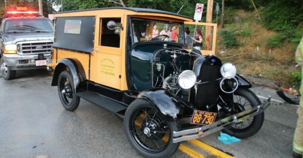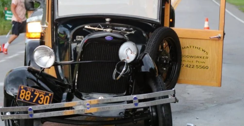 В Нью Кинстаун (США) произошло ДТП между олдкаром Ford Model A и современным кроссовером BMW.