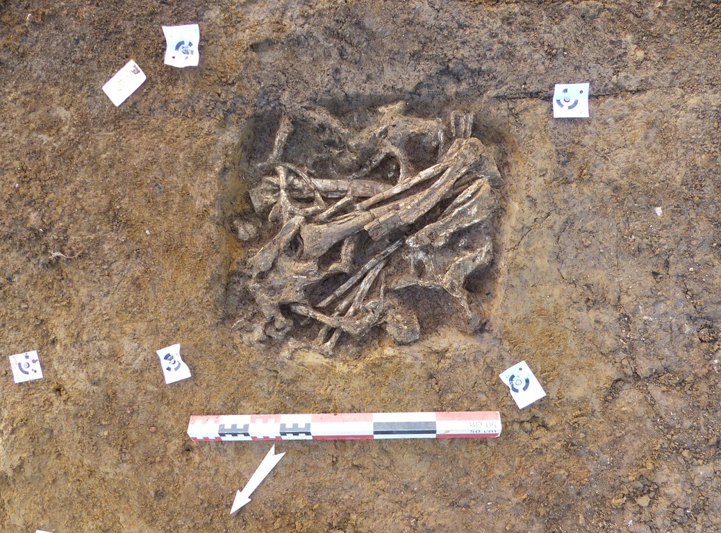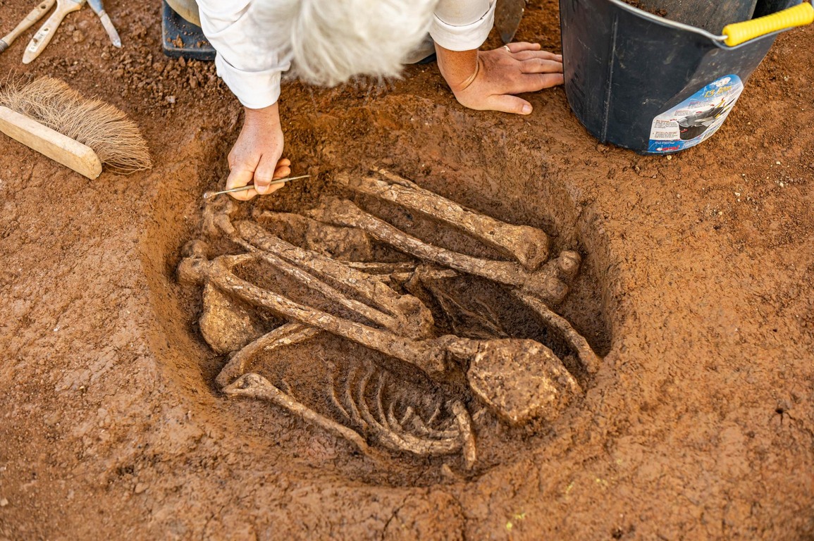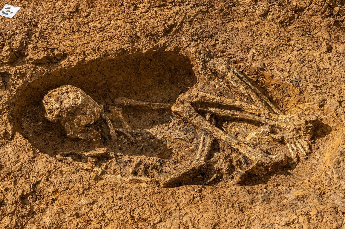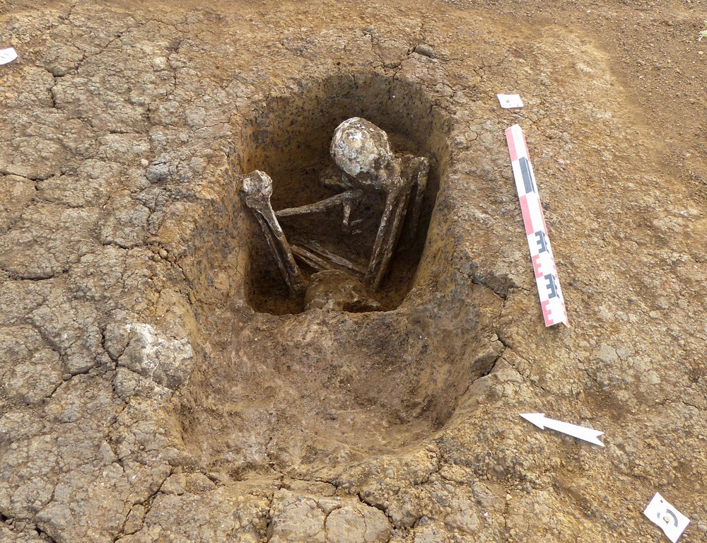 Также с этим поселением были связаны захоронения. Обнаружены остатки скелетов взрослых и детей были найдены в различных положениях: на спине, полусидя, сидя и на боку. Руки были согнуты над животом, ноги прижаты к предплечьям, локтям или груди. По мнению ученых, тот факт, что кости все еще находятся в этих позах, означает, что тела были связаны или помещены в мешки.