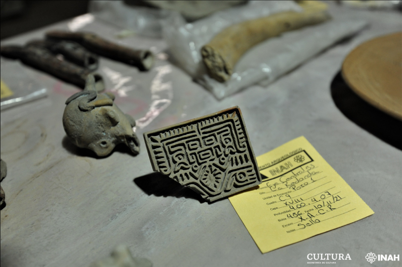 Также там был найден сосуд с основанием для установки на треноге, пять чаш, тарелка и несколько сожженных скелетов людей. Важной находкой археологи считают набор музыкальных инструментов из костей животных. Все артефакты датируются XVI веком. Предполагается, что это были жертвенные подношения, принесенные в период между 1521 и 1610 годами.