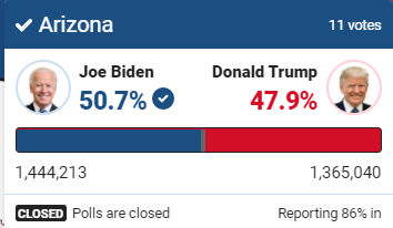 Если Байден сохранит свое лидерство в Неваде, он получит 270 голосов выборщиков, необходимых для избрания на пост президента.